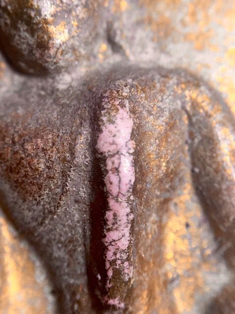 Hence, once one has developed the ability to recognise the edition and block press (pim) with the naked eye and under the eye loupe, the next and more important step, is to examine and confirm the presence of authentic Muan Sarn ingredients within the sacred Clay.