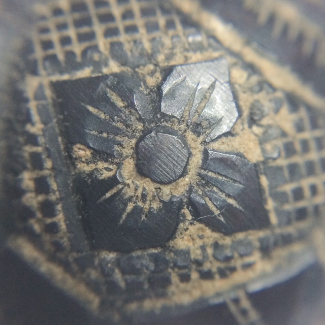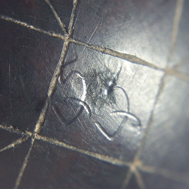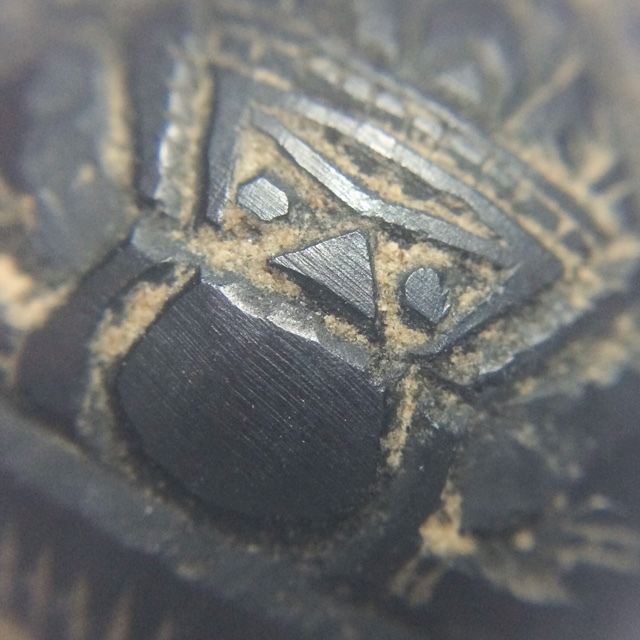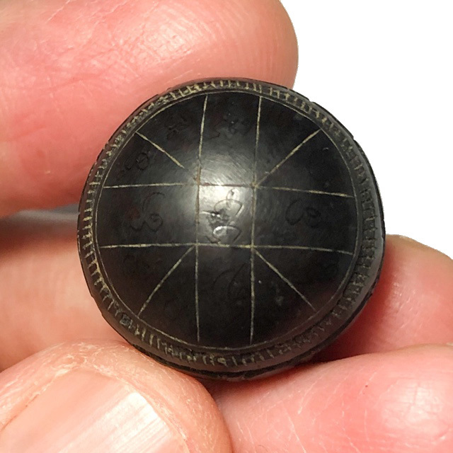 Below, the hand made Agkhara Spell Inscriptiions of Luang Por on the base of the Kot Kala Ta Diaw Pra Rahu Amulet