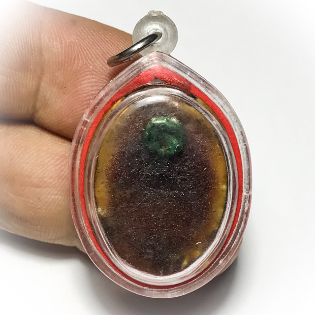 The rear face of the locket is filled with powerful see pheung metta balm, with a piece of sacred chanuan inserted. The locket was empowered from Luang Phu To. Hair from Luang Phu was mixed into the sacred See Pheung mixture, as was the case with all Muan Sarn Sacred susbstances of the great Luang Phu To.