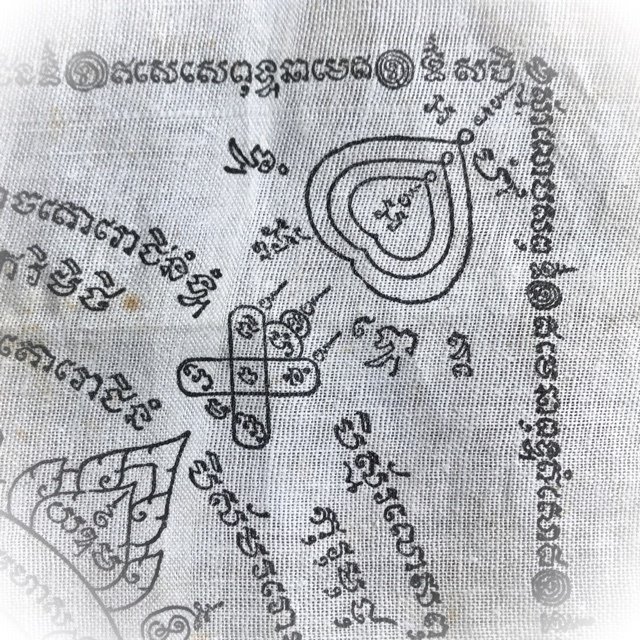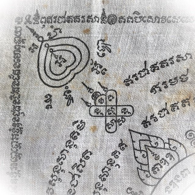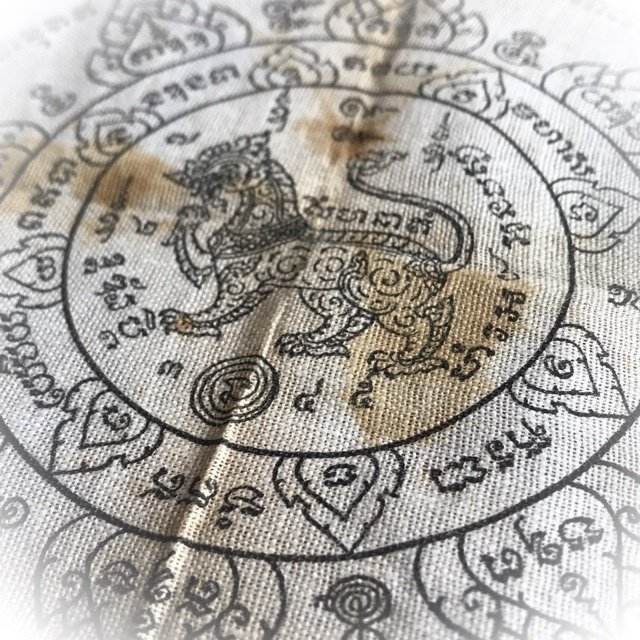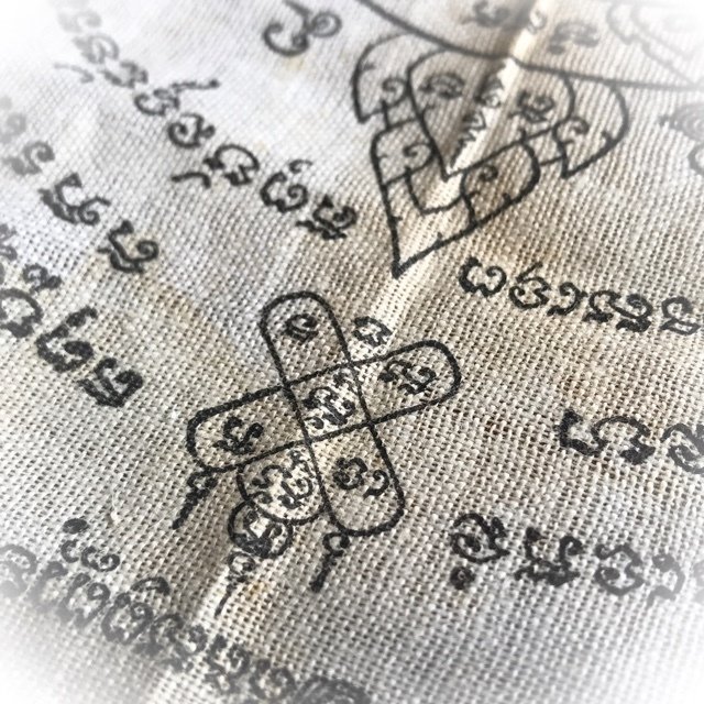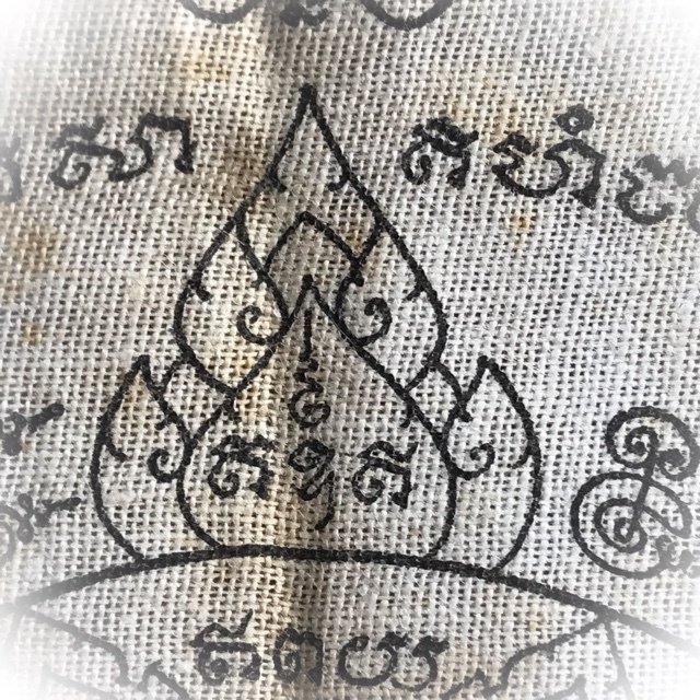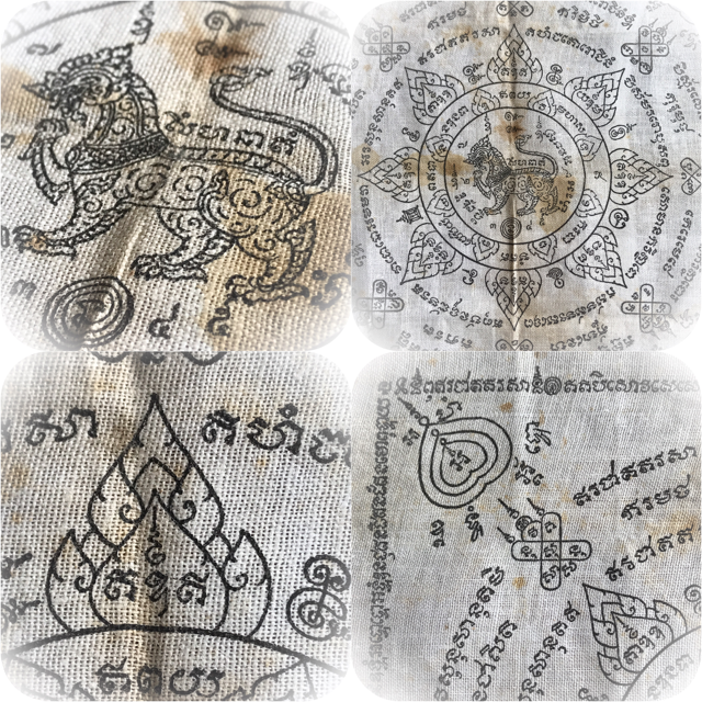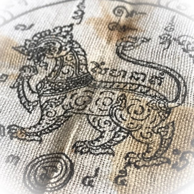 The Pha Yant Rachasri Pone leaping Himapant Lion is yet another classic protective Wicha of the warriors of olden days, for its Maha Amnaj Commanding Power, ferociousness and ability to survive, Imposing Status and Invincibility. A very rare Yantra Cloth for Power and Protection from this master, and an essential rarity of the pantheon of amulets of Luang Por Jong. The Pha Yant was used by the 'Taharn Phii' (Thailand's 'ghost soldiers') of the Indo-China and II World Wartime eras, to protect the soldiers in battle. The Wicha endows the wearer with Protection and Commanding Power, Social and Professional Status, and Good Chances of Promotion through the Aura of Respectability and Personal Power