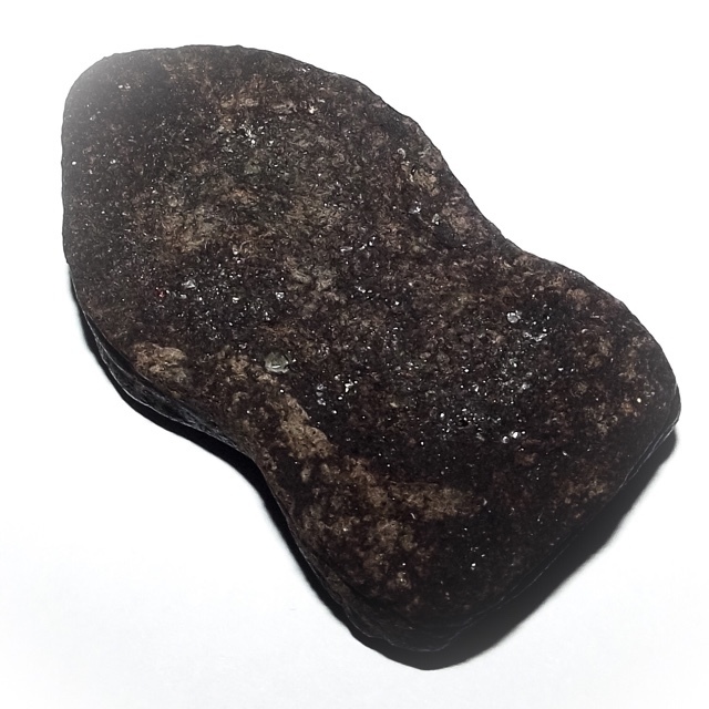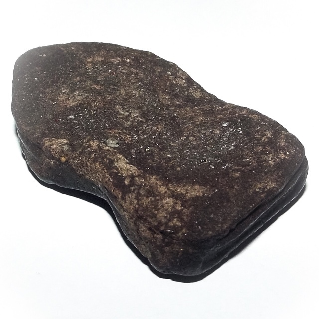 The amulet is a Pim Yai (large model, measuring 5 x 3 Cm, and has an elegant undulation to the outer border of the amulet. The rear face reveals the immensely high concentrate of sacred elements and crystalline substances, in the black sacred powder Muan Sarn mixture, which has a coars appearance from the hand mixing and pressing, which is something you do not find hardly at all in modern era amulets, where mass pressing is the norm.