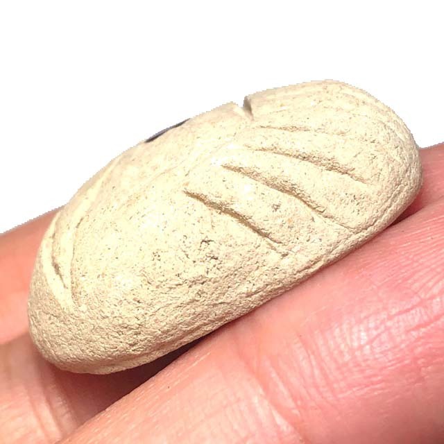 Her most famous amulet is of course the 'Pra Putto Noi' amulet, which was made in various kinds of sacred powder clay. The most popular model being the 'Pim Jumbo' large size model, in its white powder version.