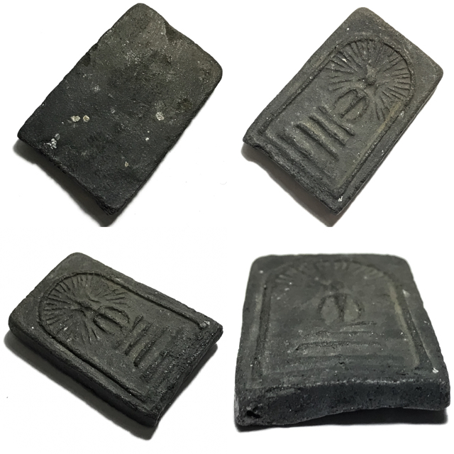 The authentic amulets, have a smooth but grainy stony feel to them, are extremely hard and dried (due to many years ageing), and have very strong 'Kraap' marks (earth and stains from being buried in the Kru for decades or centuries), which are not able to be removed with a scratch of the fingernail (this is the case often with fakes, for the Kraap hasn't had enough time to dry. You can use this technique to test amulets you suspect to be not as old as they claim to be).