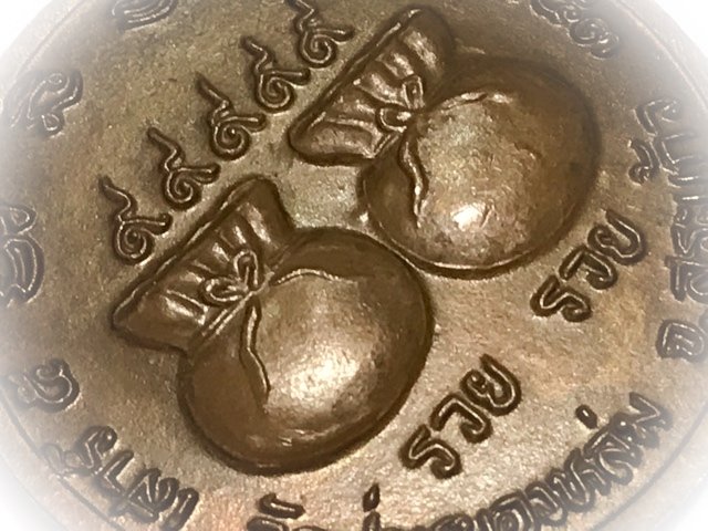 The coin is a 'Khwan Thung' (purse amulet), and has no 'hoo' pendant hoop or hole, and is intended for keeping in your purse, cashtill, or for encasement, or, with active occultists, has also been used for immersion in holy water to perform incantations and use water spraying in the place of business, to attract customers and wealth.