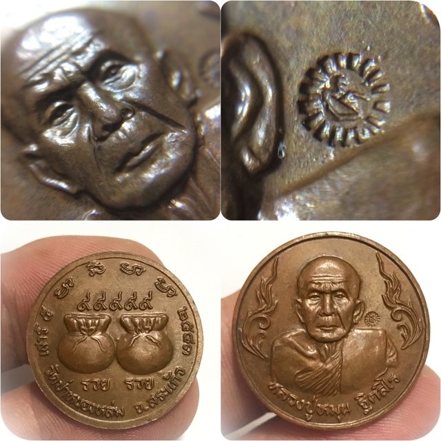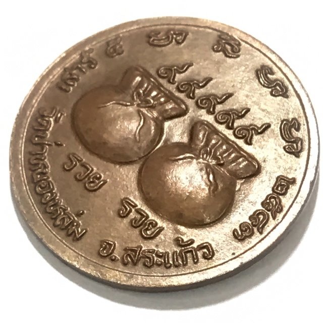 The coins were placed in the first blessing ceremony on 27th February 2543 BE at Wat Pha Nong Lom, which was held during the Piti Te Tong Roop Lor Pra Roop Muean casting ritual held for the forging of the LP Hmun Bucha altar statues and Loi Ongk statuettes, which were released in 9 and 5 inches wide base versions, and in portable 'Roop Lor Kreung Seek', which are also seen attached to the Khan Nam Mont holy water bowl of Luang Phu Hmun.