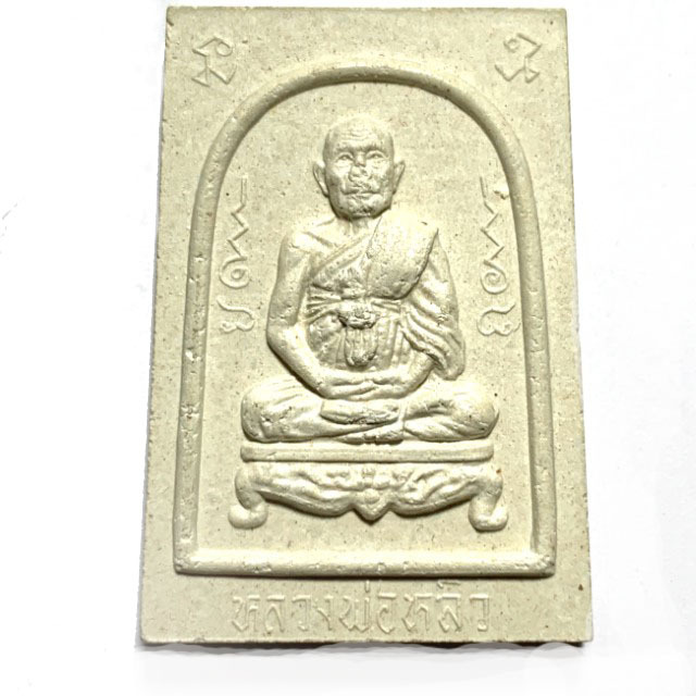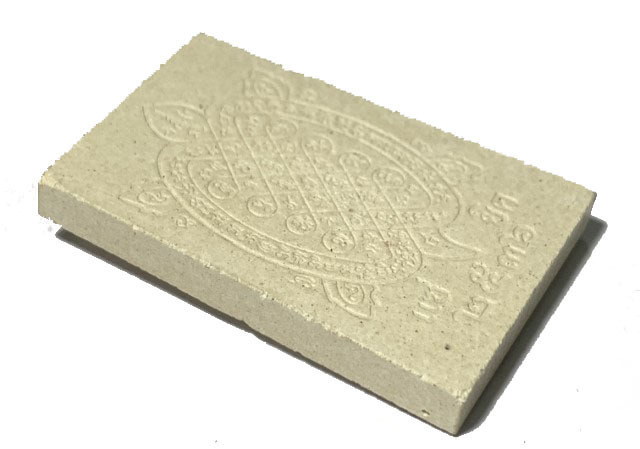Sacred Powder Votive Tablet with the image of Luang Por Liw, of of Wat Rai Dtaeng Tong on front face, and Yant Paya Tao Ruean Turtle on rear face,, from the Sae Yid 88th Birthday Edition in the year 2536 BE, in Nuea Pong Puttakun Sacred Powders of LP Liw The amulet features the image of LP Liw of Wat Rai Dtaeng Tong in Nakorn Pathom, so famed for his Wicha Paya Tao Ruean Turtle Magic, which is embossed on the rear face as a Sacred Yantra.
