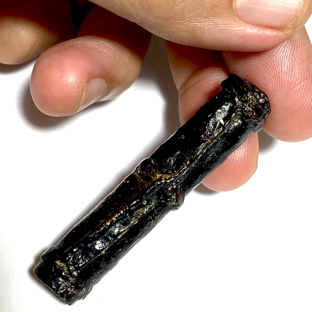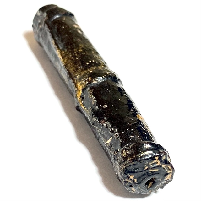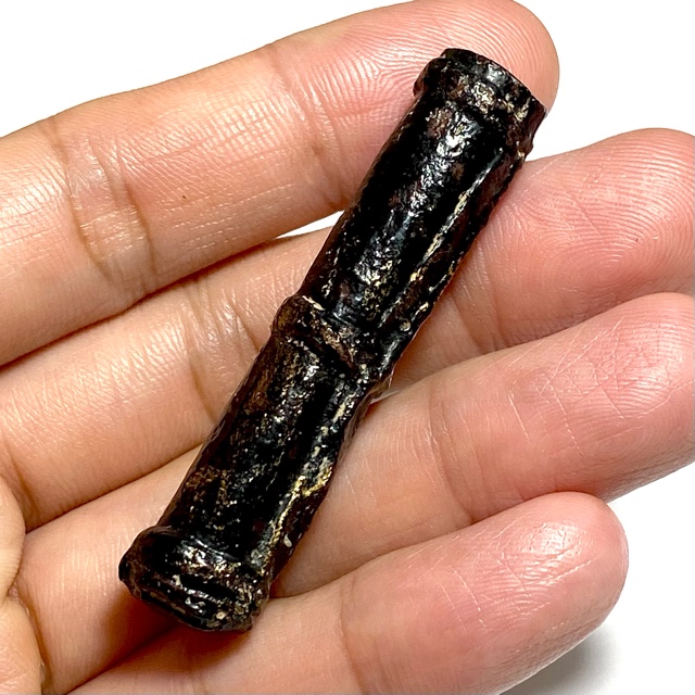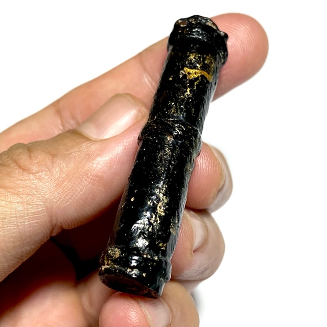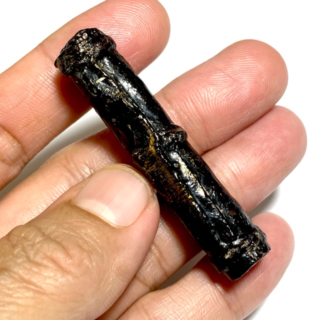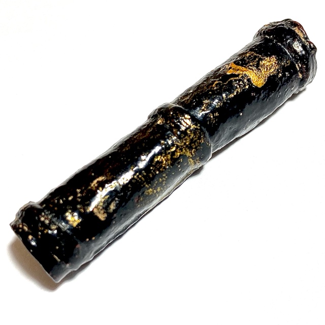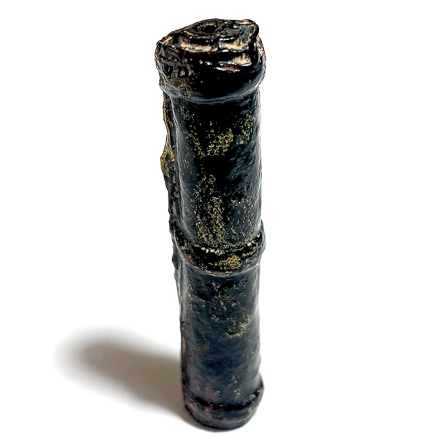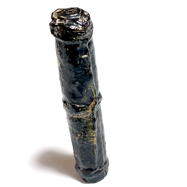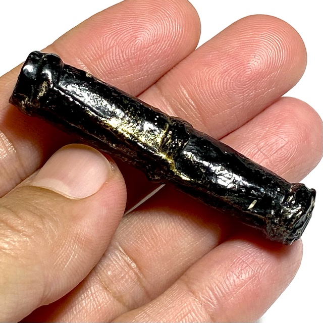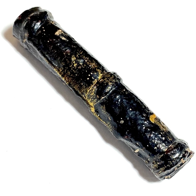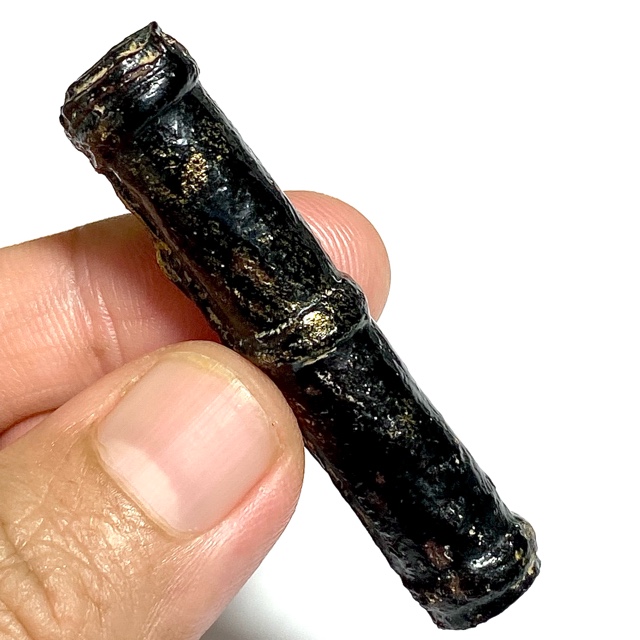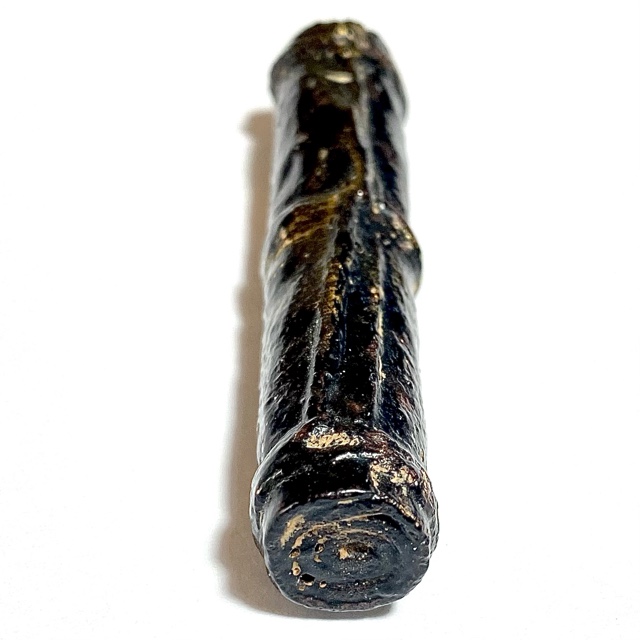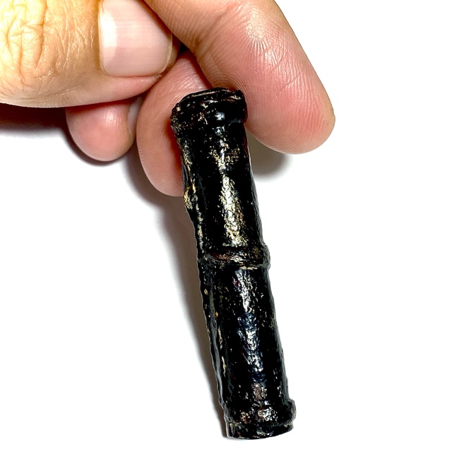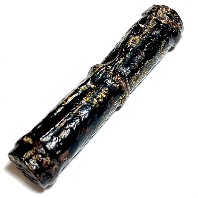 The Devotees of the time would go to buy Tiger skin from the Jao Grom Ber shop in fromt of Wat Sam Plerm, as in those days, hunters and collectors of animal hides, bone, teeth and the like would take their wares to sell through this shop. (hides and parts, many of which are now prohibited to sell, but which in those days was common to see on the market). Luang Phu Nak would usually make his Takrut somewhere between 1 to 2 Inches long, which allowed for only a few Takrut to be made from one forehead skin, which was why his Takrut were rarely seen over 2 Inches long.