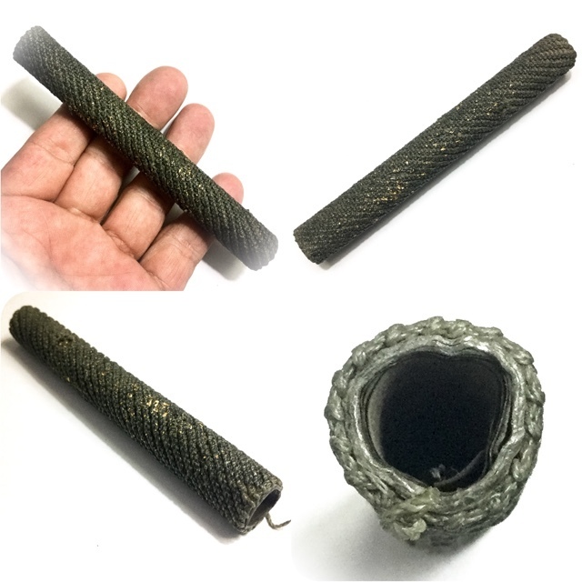 His charms and Talismans are legendary for their power of Kong Grapan Chadtri, Klaew Klaad, and Maha Ud Magic. His Takrut Tone Tak Daay Cord-Bound Yantra scroll spells are the most highly sought after amulets in the ’Sian Pra’ amulet collector societies, and carry heavy prices to them, and are immensely rare to find.